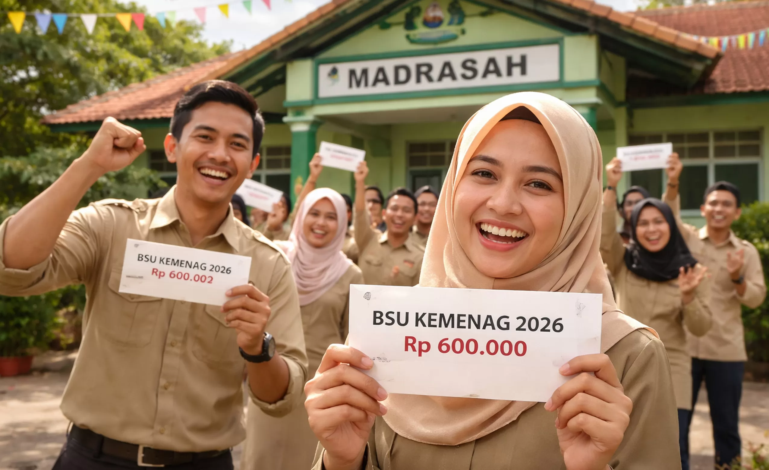 Pemerintah melalui Kementerian Agama (Kemenag) kembali menyalurkan Bantuan Subsidi Upah (BSU) 2026 bagi guru madrasah non-PNS atau non-ASN. Program ini dirancang untuk meringankan beban ekonomi tenaga pendidik yang belum menerima tunjangan profesi, terutama di lingkungan pendidikan Islam seperti RA, MI, MTs, dan MA. Penyaluran BSU bagi guru dan tenaga kependidikan non-ASN ini dilaporkan mulai dicairkan sejak akhir Desember 2025 dan berlanjut pada awal tahun 2026 sebagai bentuk perhatian pemerintah terhadap kesejahteraan guru.